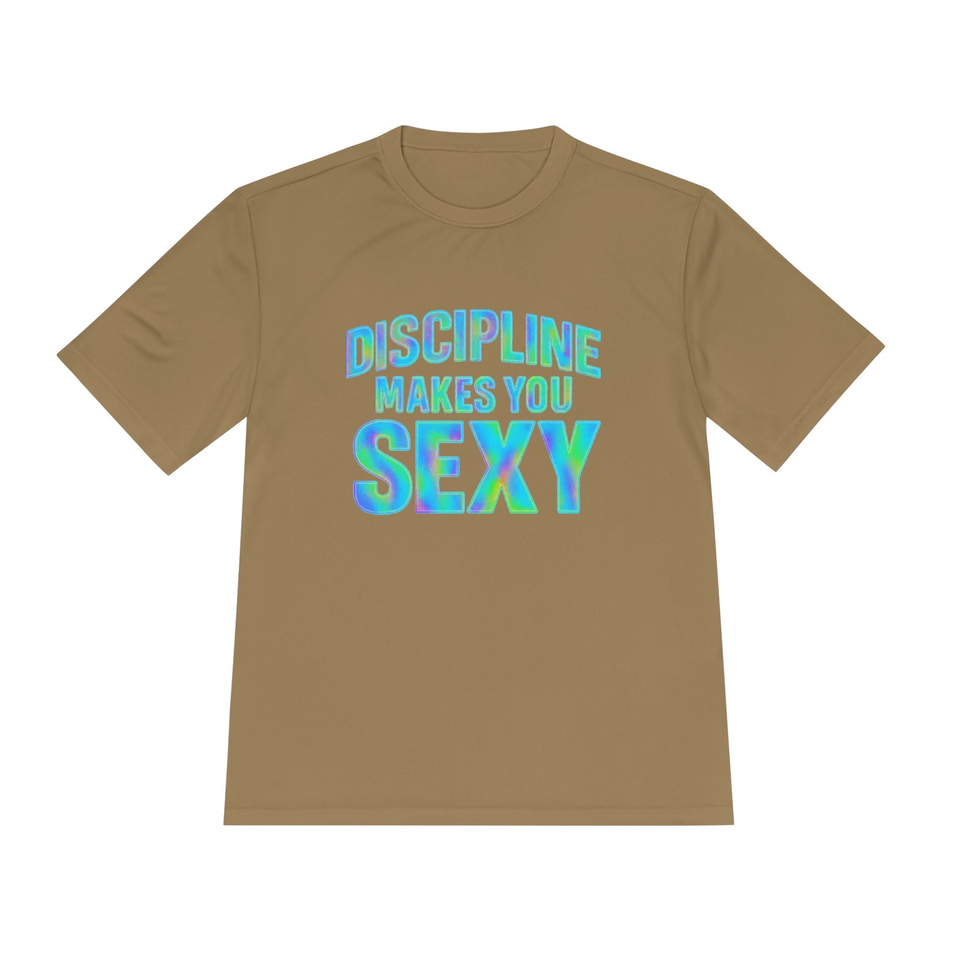 Lightweight and breathable, this moisture-wicking tee moves with you through every set and recovery lap. The front sports a bold, retro-inspired slogan that celebrates discipline and grit, while a small emblem rests on the upper back for a subtle, confident finish. Feels cool against the skin and dries fast after a sweaty session. Wear it to push through morning cardio, lift with focus, or lounge post-workout — it holds its shape and stays comfortable through it all.